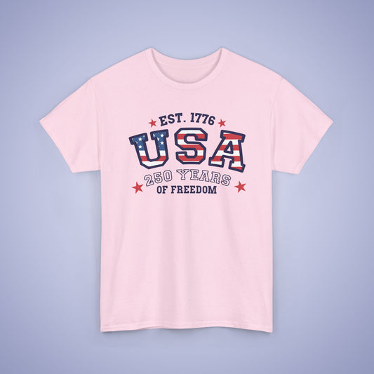 250 Years of Freedom Patterned Text Word Art USA Celebration Unisex T Shirt
