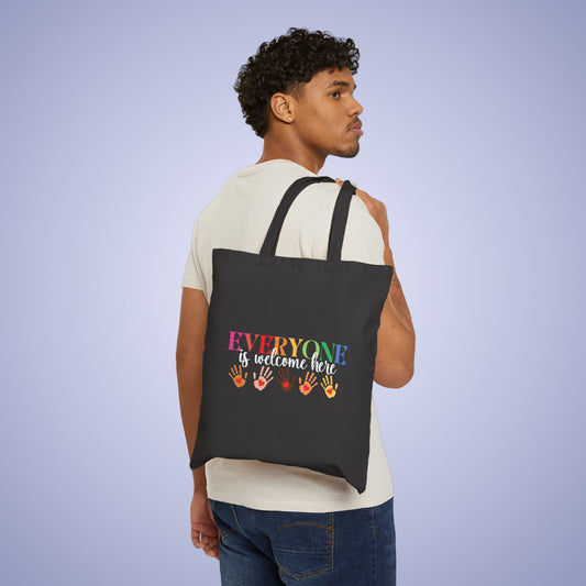 Everyone is Welcome Here Black Cotton Canvas Tote Bag