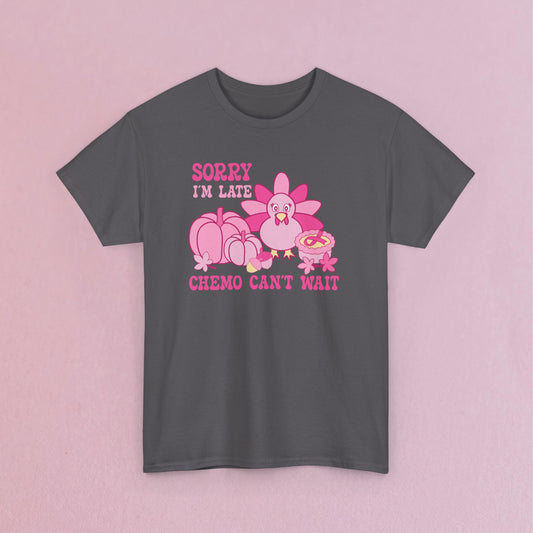 Sorry Im Late Chemo Cant Wait Breast Cancer Thanksgiving Dinner Awareness Unisex T Shirt