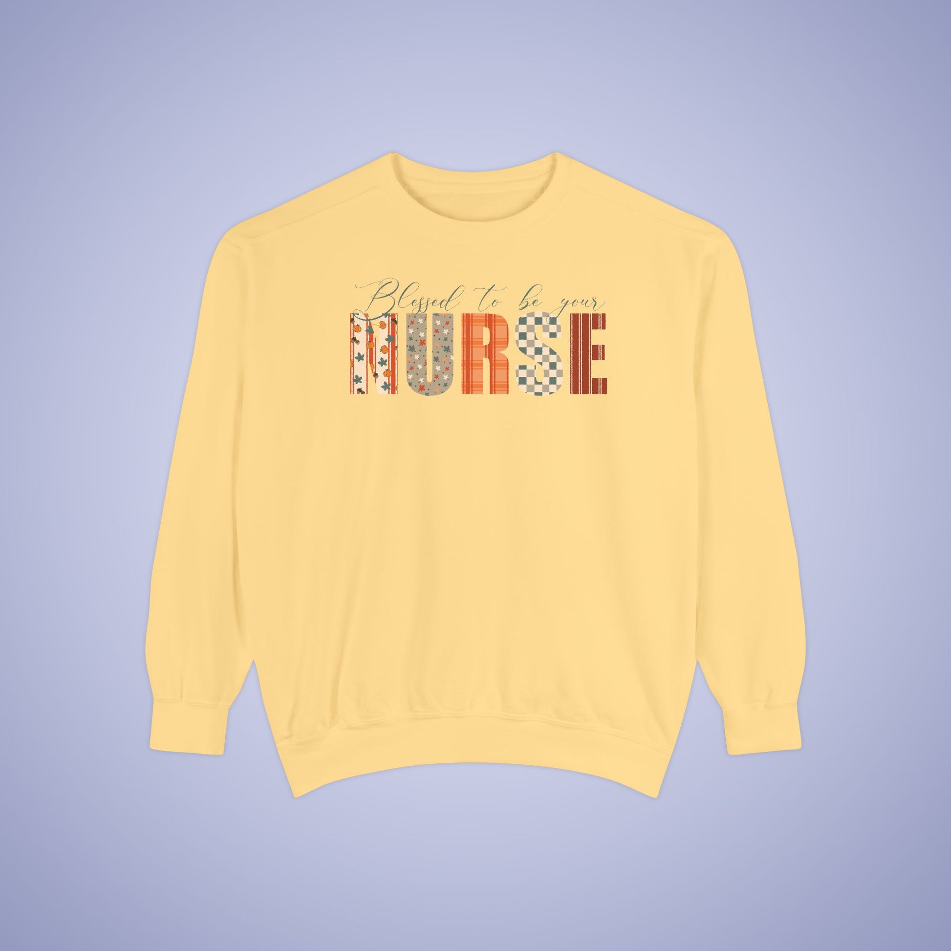 Blessed to be Your Nurse White Thanksgiving Patterned Word Art Comfort Sweatshirt Unisex